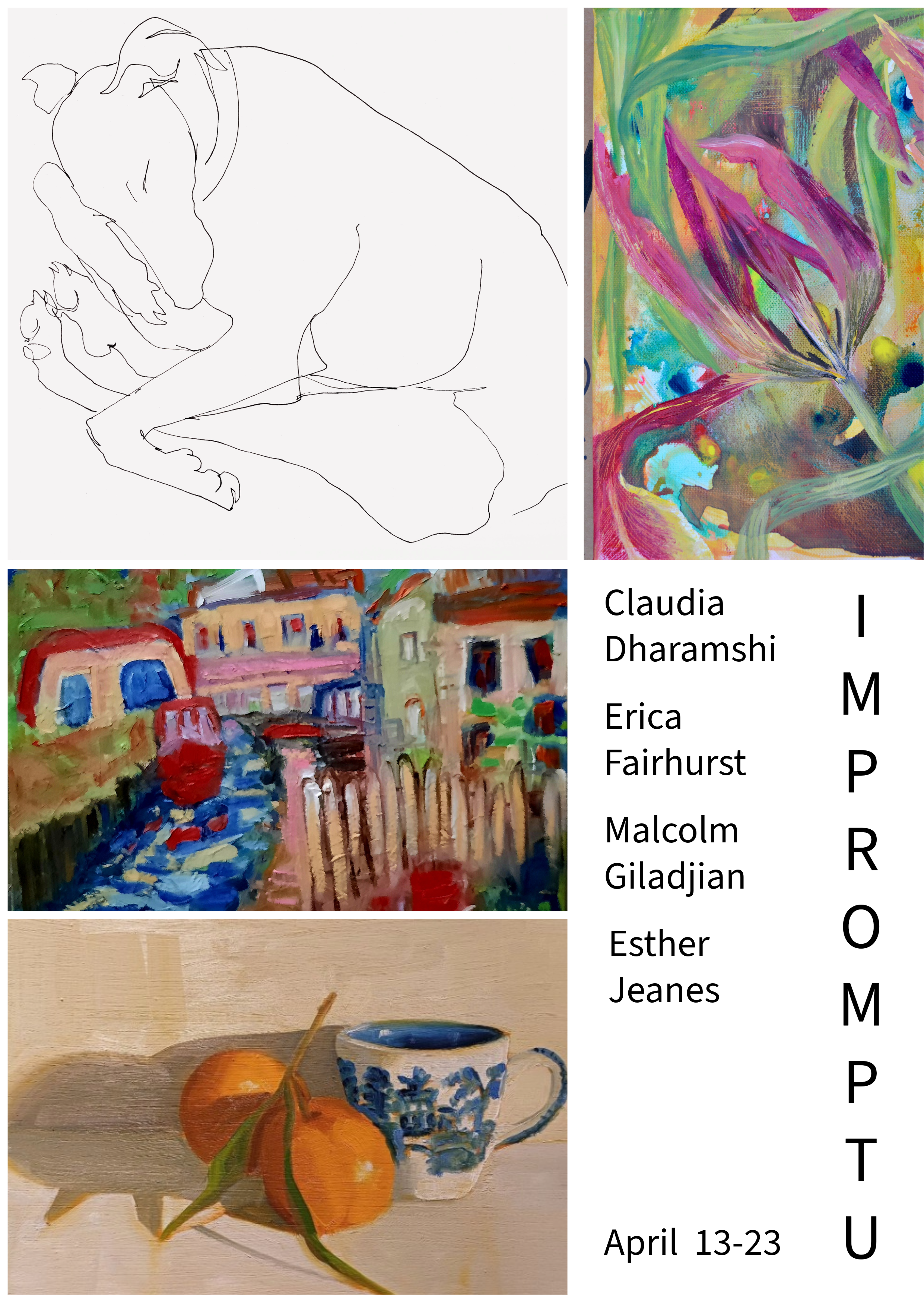 13 until 23 AprilIMPROMPTUClaudia Dharamshi - Malcolm Giladjian - Erica Fairhurst - Esther Jeanes IMPROMPTU13 until 23 April 2026CLAUDIA DHARAMSHI - MALCOLM GILADJIAN - ERICA FAIRHURST - ESTHER JEANESOpen Daily