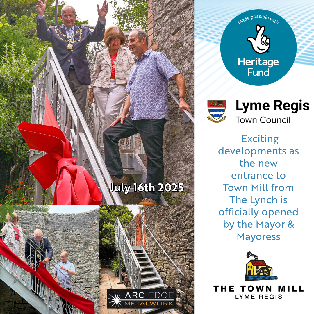 It has been possible to complete these projects because of the generous support of The National Lottery Heritage Fund and the Lyme Regis Town Council who have recognised the significance of this free-entry heritage site in the very centre of Lyme Regis which connects both the local community and visitors alike with the rich traditions of over 700 years of stone-ground milling of flour at Town Mill and which continues daily on site to this day.