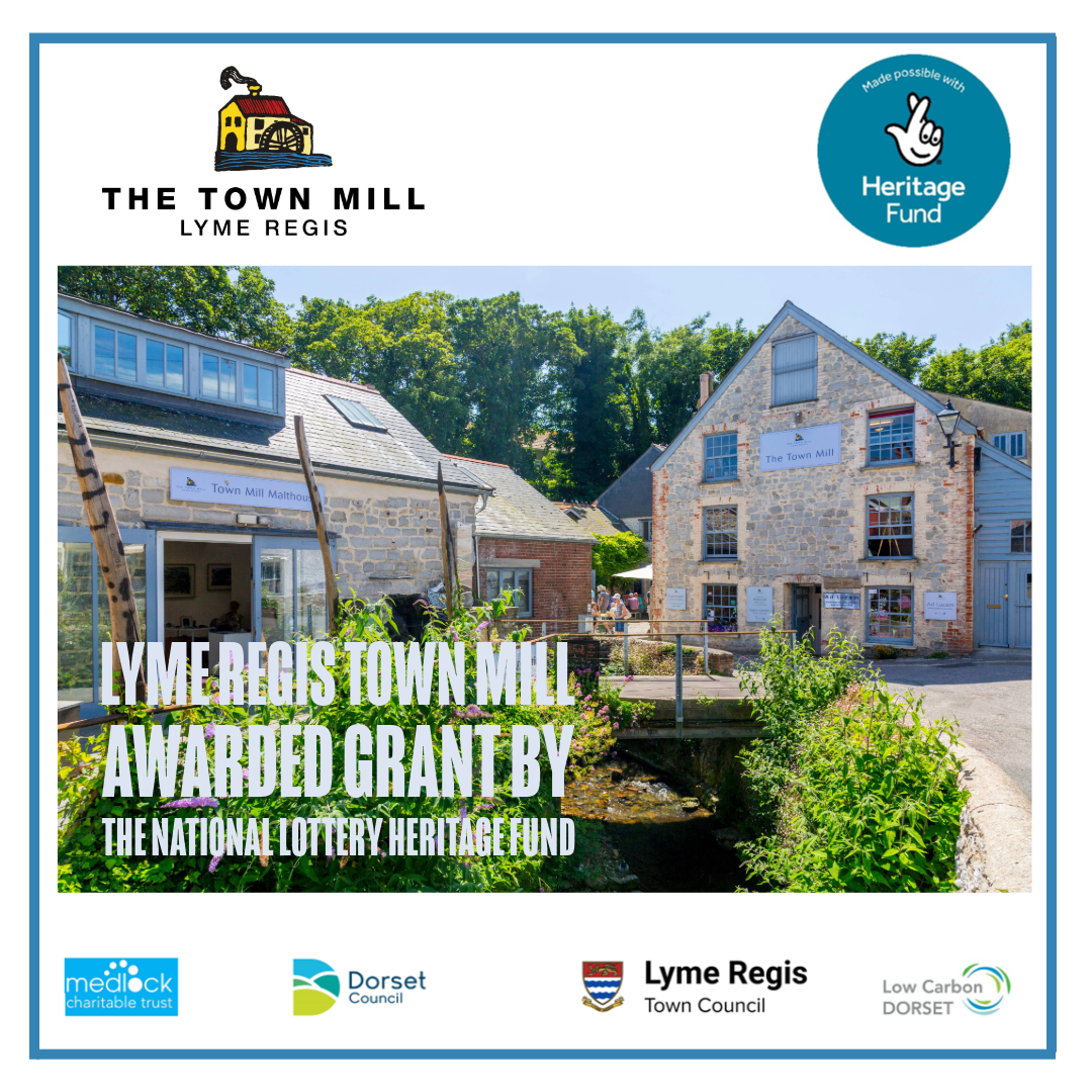 Lyme Regis Town Mill Trust are delighted to announce that their application for a grant of just over £127,000 from The National Lottery Heritage Fund has been successful. The grant, which is part of an almost £200,000 project, will enable the Trust to make a range of improvements, creating a sustainable future for this historic site. Further funding has been provided by Lyme Regis Town Council, Dorset Council's Cultural Fund, Low Carbon Dorset, the Medlock Fund and the Town Mill Trust itself.